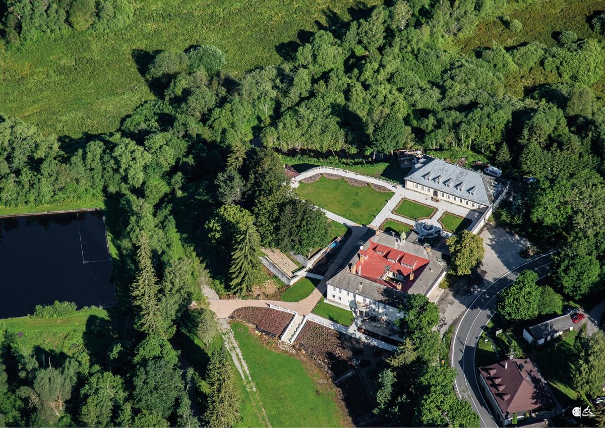 Okolo domu byla růžová loubí, za domem terasy s bohatými záhony květin, s ovocnými stromy a záhony jahod.
