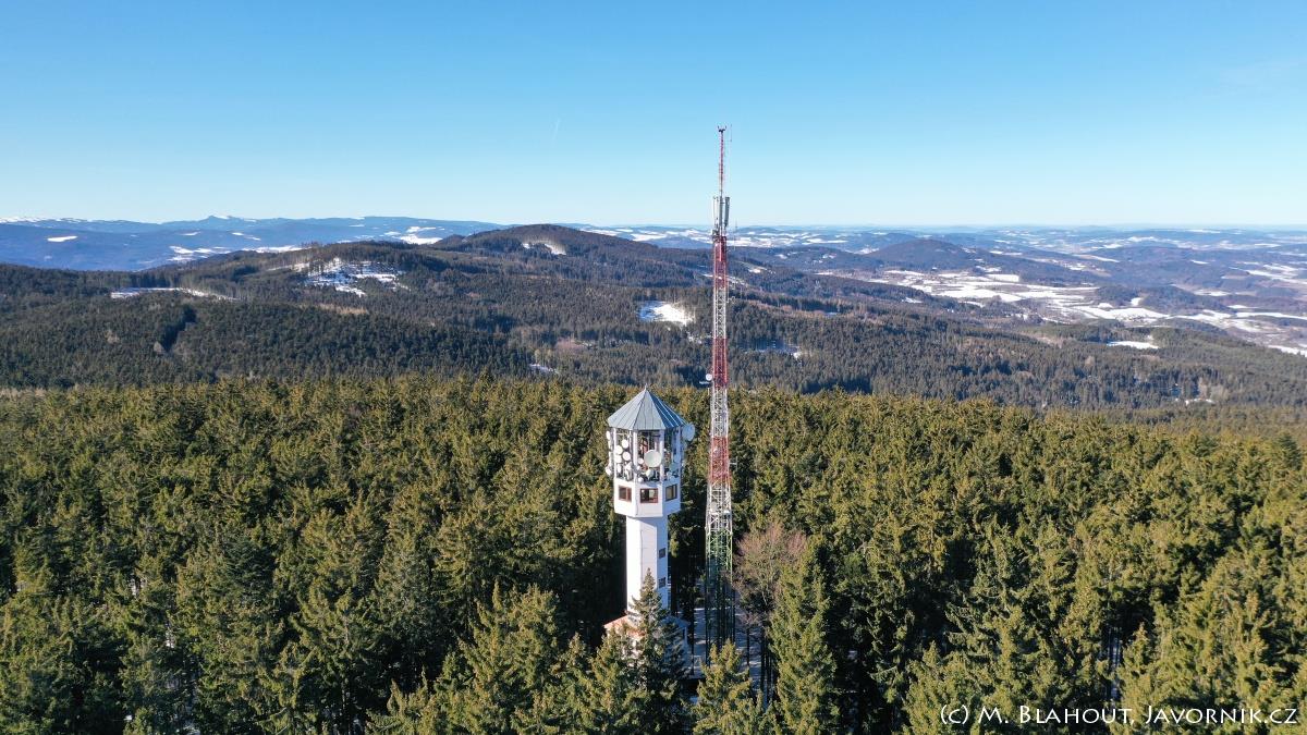 Z Javorníka: z centra obce Javorník stoupáme po modré asi 200 m. Dále se rozhodneme, zda budeme pokračovat dál po asfaltce (cyklisti) – pěším doporučujeme pokračovat 400m po modré značce, která vede okrajem lesa až k rotundě, kapli sv. Antonína Paduánského. Z výšky 1009 m n.m. je nádherný výhled na Vimpersko. Dále pokračujeme lesem do kopce, opět se napojíme na asfaltku a dorazíme k rozhledně. Celková délka trasy: 1,1 km, stoupání 103 m.