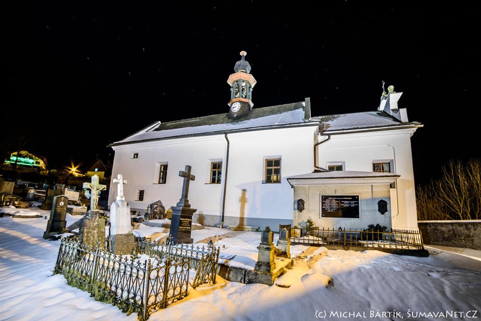 Místo posledního odpočinku zde našla manželka národního umělce Zdeňka Štěpánka Soňa, legenda šumavské myslivosti hajný Waltr Paleček a při stěně kostela je umístěna rodinná hrobka majitelů lenorské sklárny Kraliků.